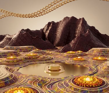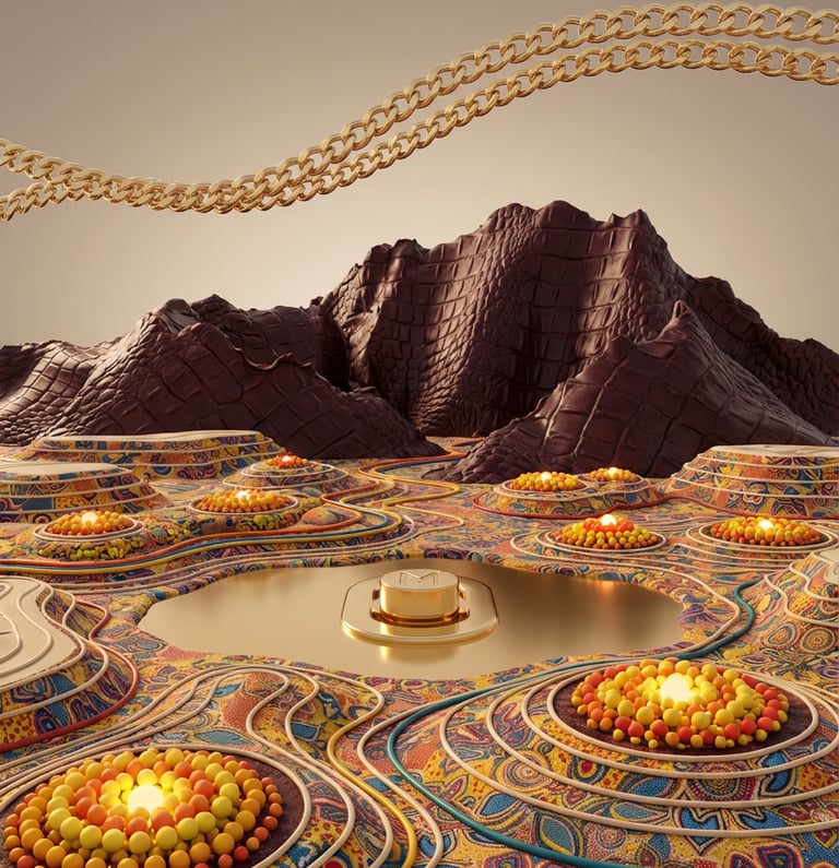 Objectif : transformer les pièces du produit en paysage onirique hyper réaliste.